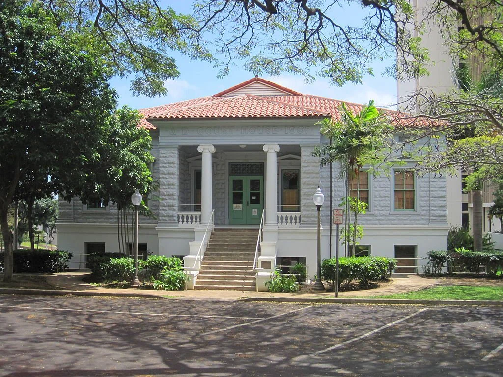Built in 1907, this old courthouse was used as Maui County's Town Hall. Designed by architect Henry Livingston Kerr in the Beaux Arts Revival style this building is part of the Wailuku Civic Center Historic District. It currently houses the offices of the Prosecuting Attorney.